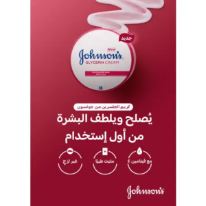 كريم جونسون بزيت الجلسرين لترطيب يدوم طويلاً! يُرطب ويُغذي بشرتكِ بعمق. تركيبة فعالة لجميع أنواع البشرة. متوفر بحجم 100 مل.