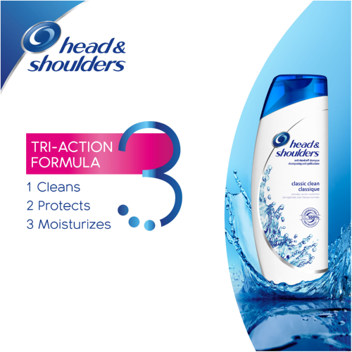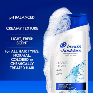 استمتع بشعر نظيف وصحي وخالي من القشرة مع شامبو هيد آند شولدرز كلاسيك كلين! تركيبة فعّالة تُنظف فروة الرأس بعمق، وتُخلصك من القشرة، مع الحفاظ على ترطيب الشعر. مناسب لجميع أنواع الشعر.