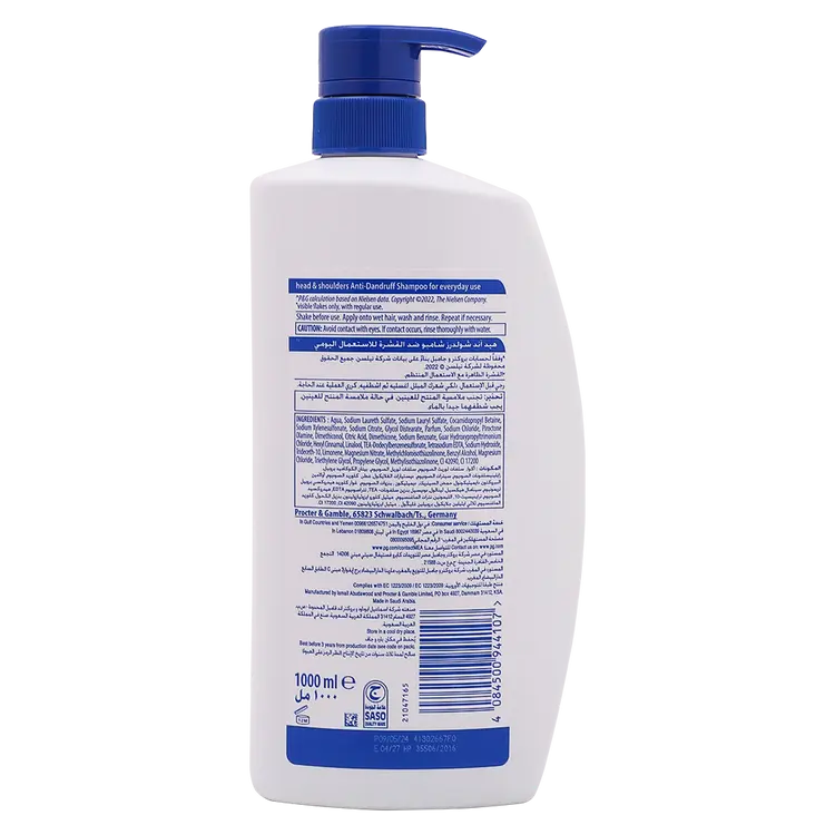 استمتع بشعر نظيف وصحي وخالي من القشرة مع شامبو هيد آند شولدرز كلاسيك كلين! تركيبة فعّالة تُنظف فروة الرأس بعمق، وتُخلصك من القشرة، مع الحفاظ على ترطيب الشعر. مناسب لجميع أنواع الشعر.