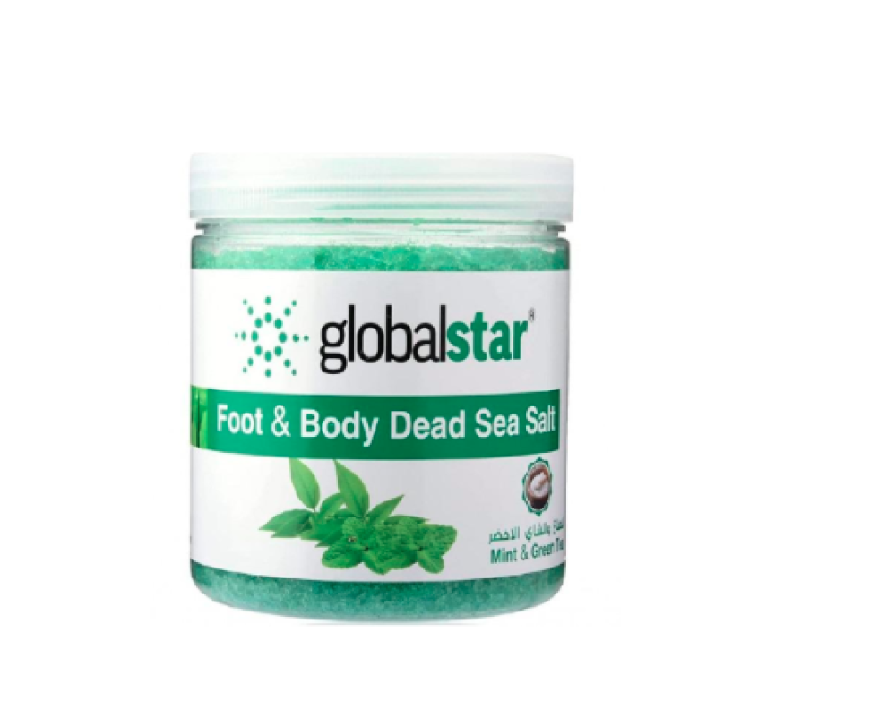 - جلوبال ستار ملح البحر الميت بالنعناع والشاي الأخضر ينظف ويقشر البشرة للحصول على بشرة صحية وناعمة.
