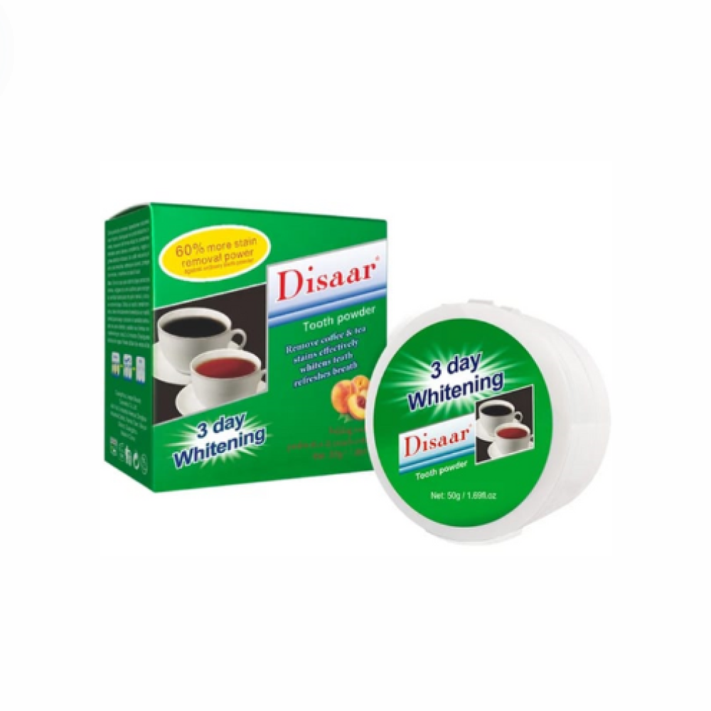 بودرة أسنان للتبييض و معالجة اثار الشاي والقهوه 50 جرام من ديساربودرة تنظف الأسنان بعمق وتبييضها، و تحل بشكل فعال مشاكلالأسنان مثل اصفرار الأسنان، و الأسنا…