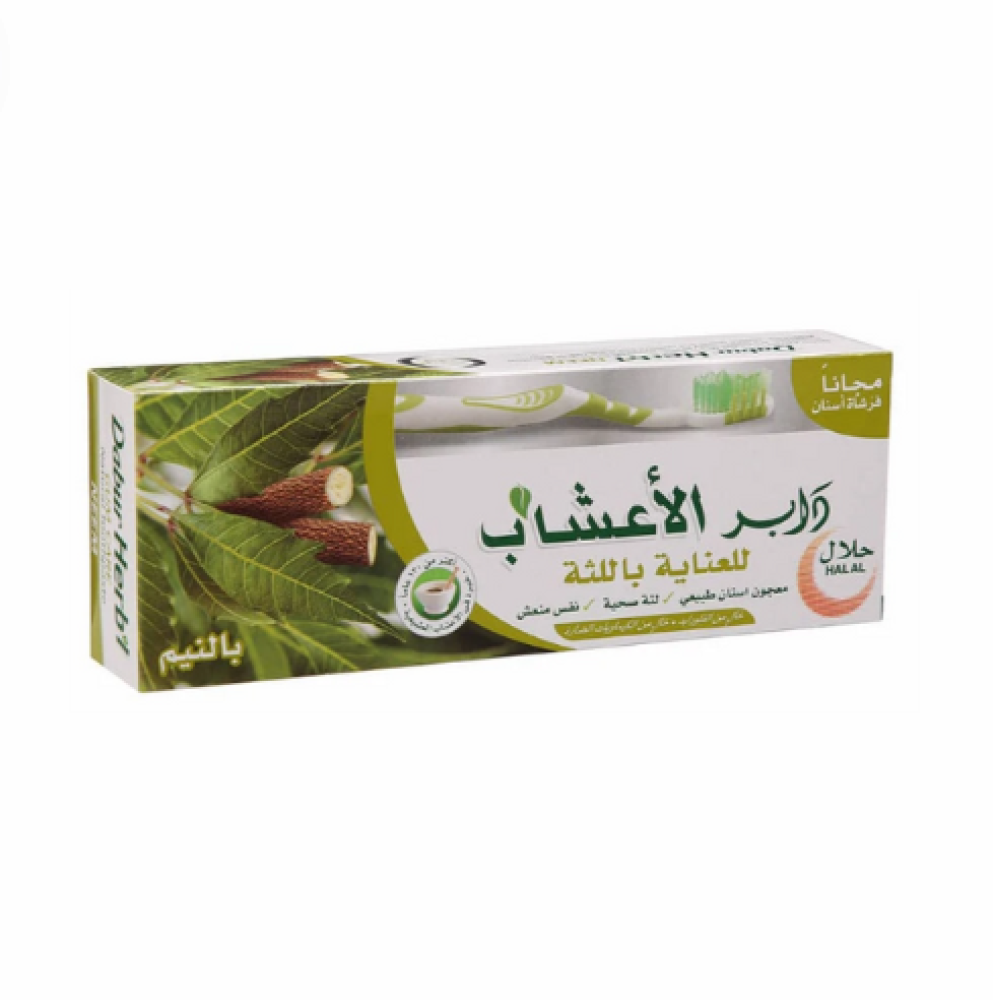 دابر هيربال معجون أسنان بالنيم الطبيعي هو معجون أسنان عشبي مصنوع من مكونات طبيعية، بما في ذلك النيم المعروف بخصائصه المضادة للبكتيريا والمفيدة لصحة الفم.