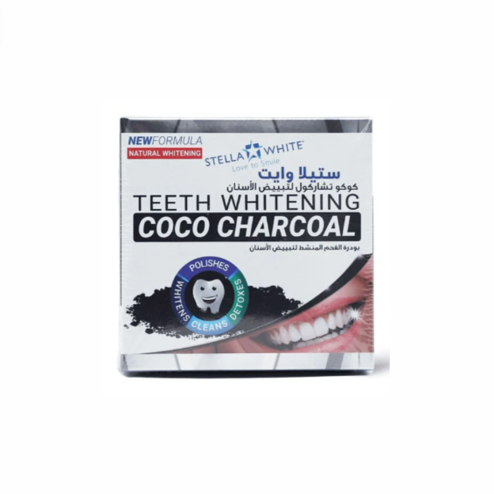 بودرة الفحم هي مسحوق ناعم للاستخدام اليومي تعمل على إزالة البقع الملونه من سطح الاسنان لتحصل على اسنان أكثر بياضا.