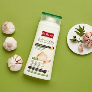 احصلي على شعر قوي وصحي مع شامبو بيوبلاس بزيت الثوم! تركيبة غنية تُنشط فروة الرأس وتُعزز نمو الشعر، مُناسب لجميع أنواع الشعر.
