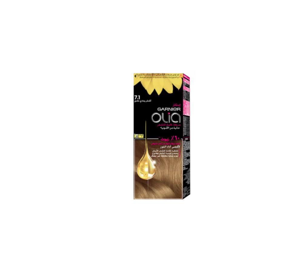 صبغة شعر دائمة اوليا بدون أمونيا 7.1 اشقر رمادي غامق من غارنييه