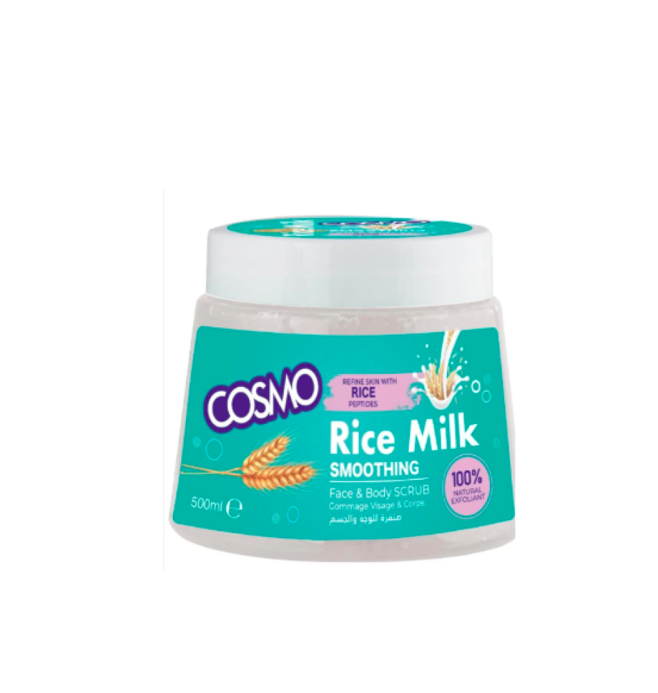 استعيدي إشراق بشرتك مع صنفرة الوجه والجسم بحليب الأرز من كوزمو.