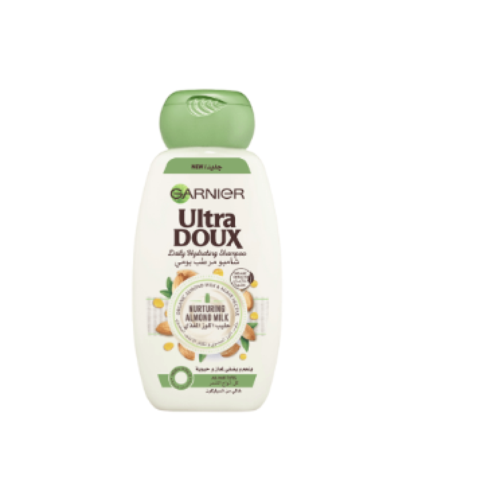 احصلي على شعر صحي ورائع مع شامبو الترا دو مرطب يومي للشعر بخلاصة حليب اللوز المغذي من غارنييه.