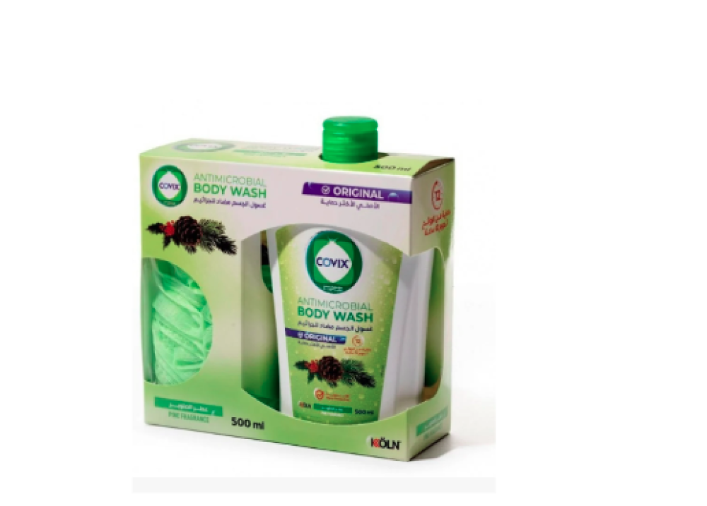 كوفيكس غسول للجسم مضاد للجراثيم بعطر الصنوبر , 500مل مع الليفة