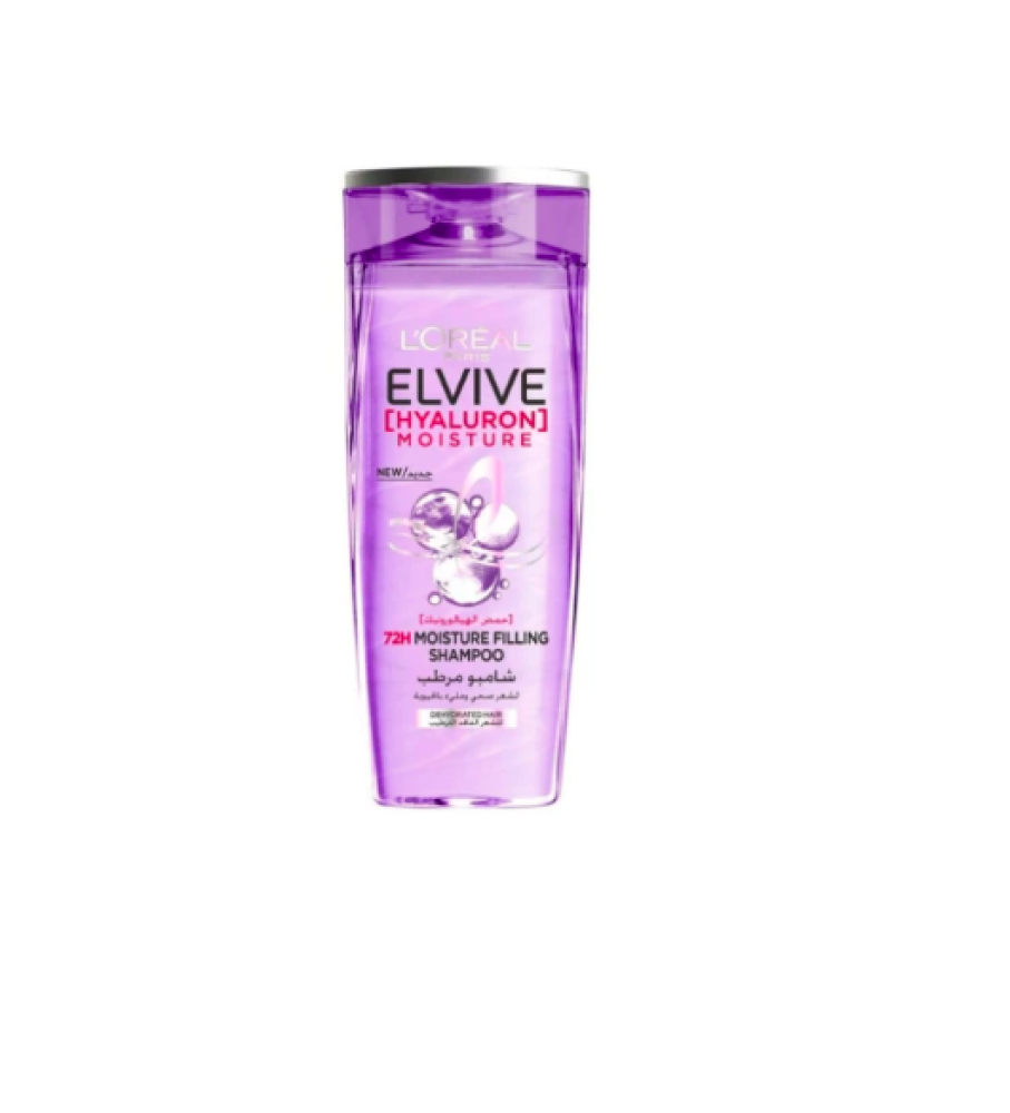 لوريال باريس ايلفيف شامبو مرطب بحمض الهيالورونيك تم تصميمه خصيصًا للشعر الجاف ويحتوي على حمض الهيالورونيك للمساعدة في ترطيب الشعر ومنحه مظهرًا ممتلئًا.