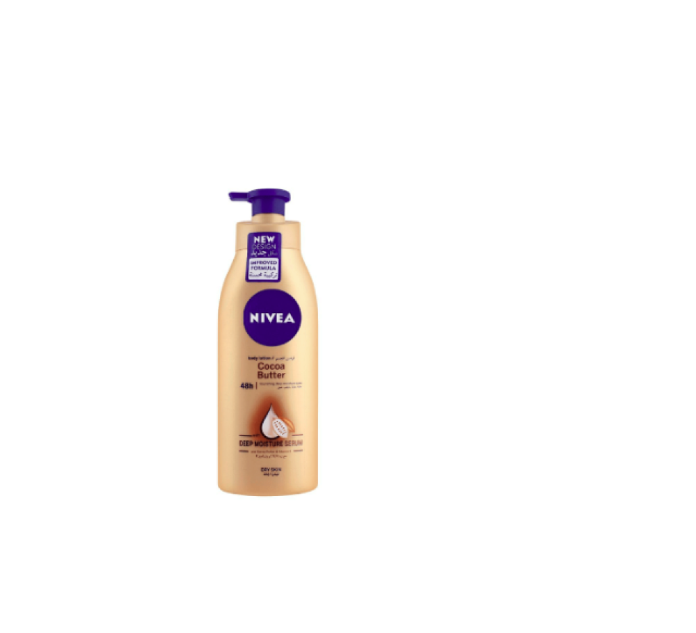 لوشن مرطب للجسم غني بزبدة الكاكاو الفاخرة وسيروم الترطيب العميق من نيفيا.