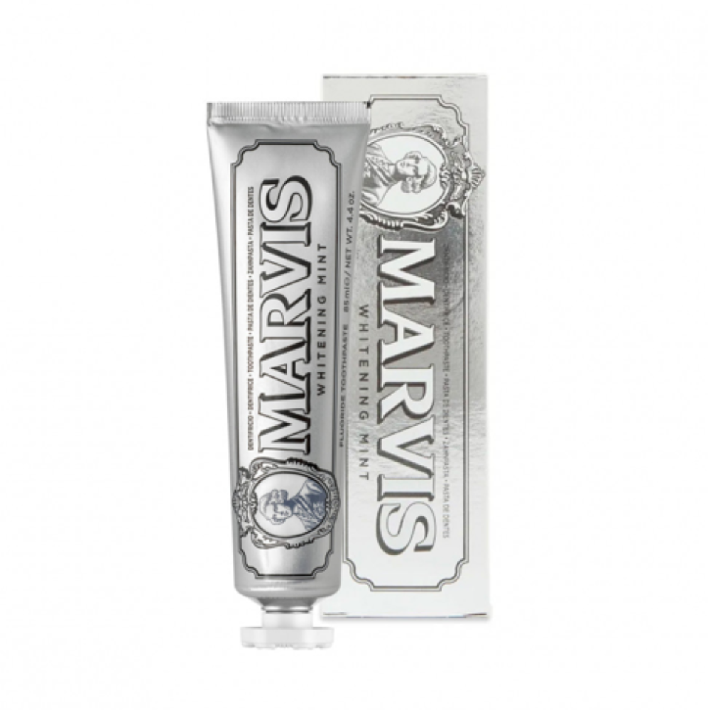 معجون أسنان ماركة مارفيس بنكهة النعناع المنعش. يتميز هذا المعجون بقدرته على تبييض الأسنان وإزالة البقع، مما يمنحك ابتسامة أكثر بياضا وإشراقا.