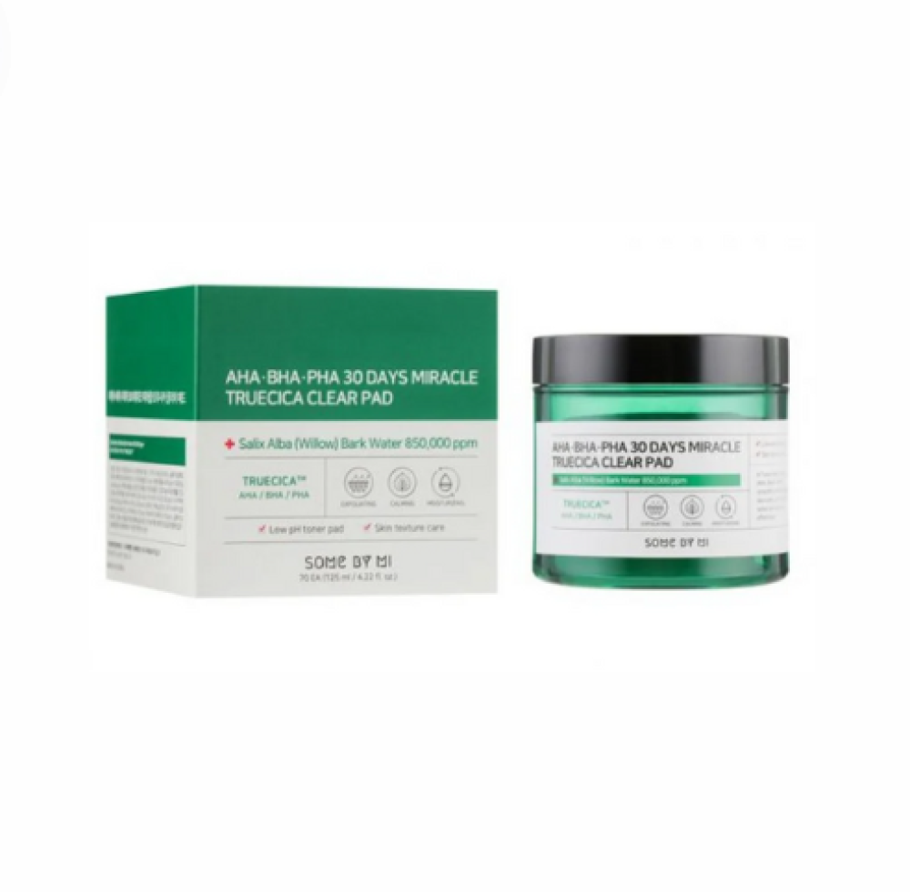 - مسحات قطنية تروسيكا المعجزة من سوم باي مي 70 قطنة، قطع قطنية ناعمة نقعت بتركيز عالي من مياه جذور الصفصاف 85 % لتنظف البشرة بفاعلية عالية، كما تحتوي على احماض التقشير الطبيعية (ألفا، بيتا، وبولي هيدروكسي أسد ) والتي تزيل الأوساخ، الدهون الزائدة، والخلايا الميتة من المسام بمسحة واحدة. مكونة من سطحين احدهما ناعم والاخر منقوش لتوفر تنظيف عميقا للبشرة. تهدئ البشرة الحساسة والملتهبة.